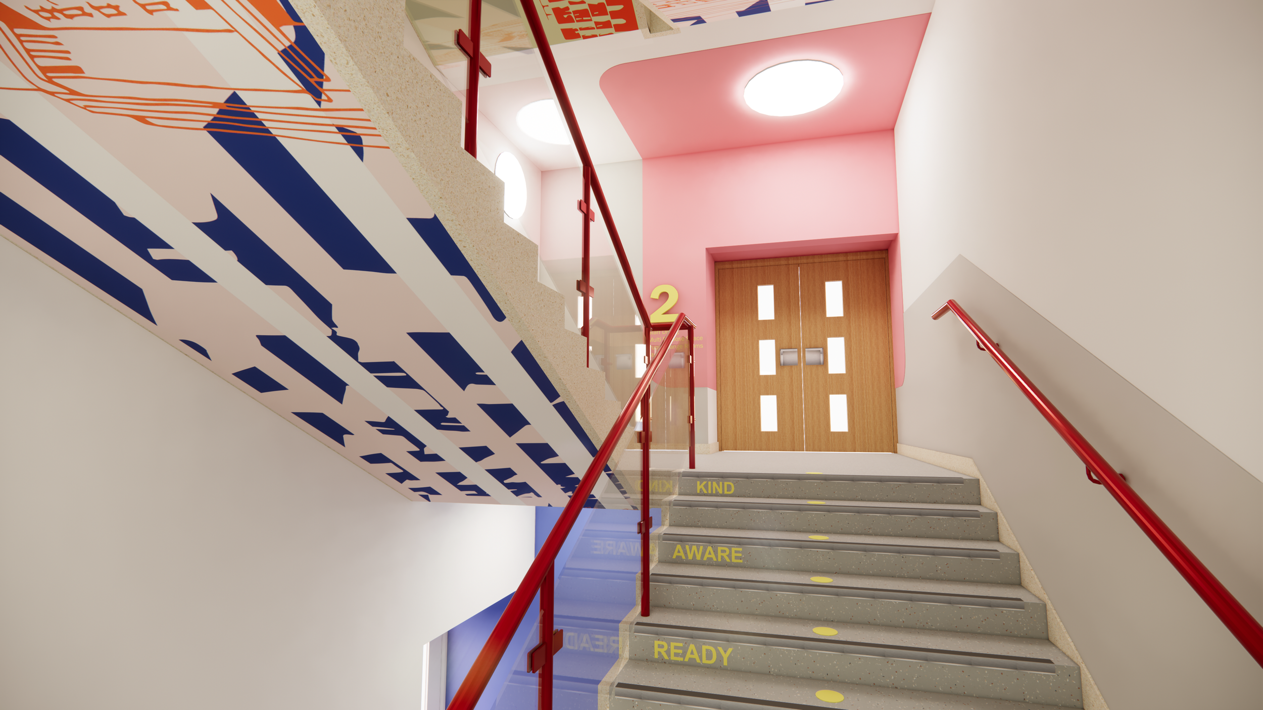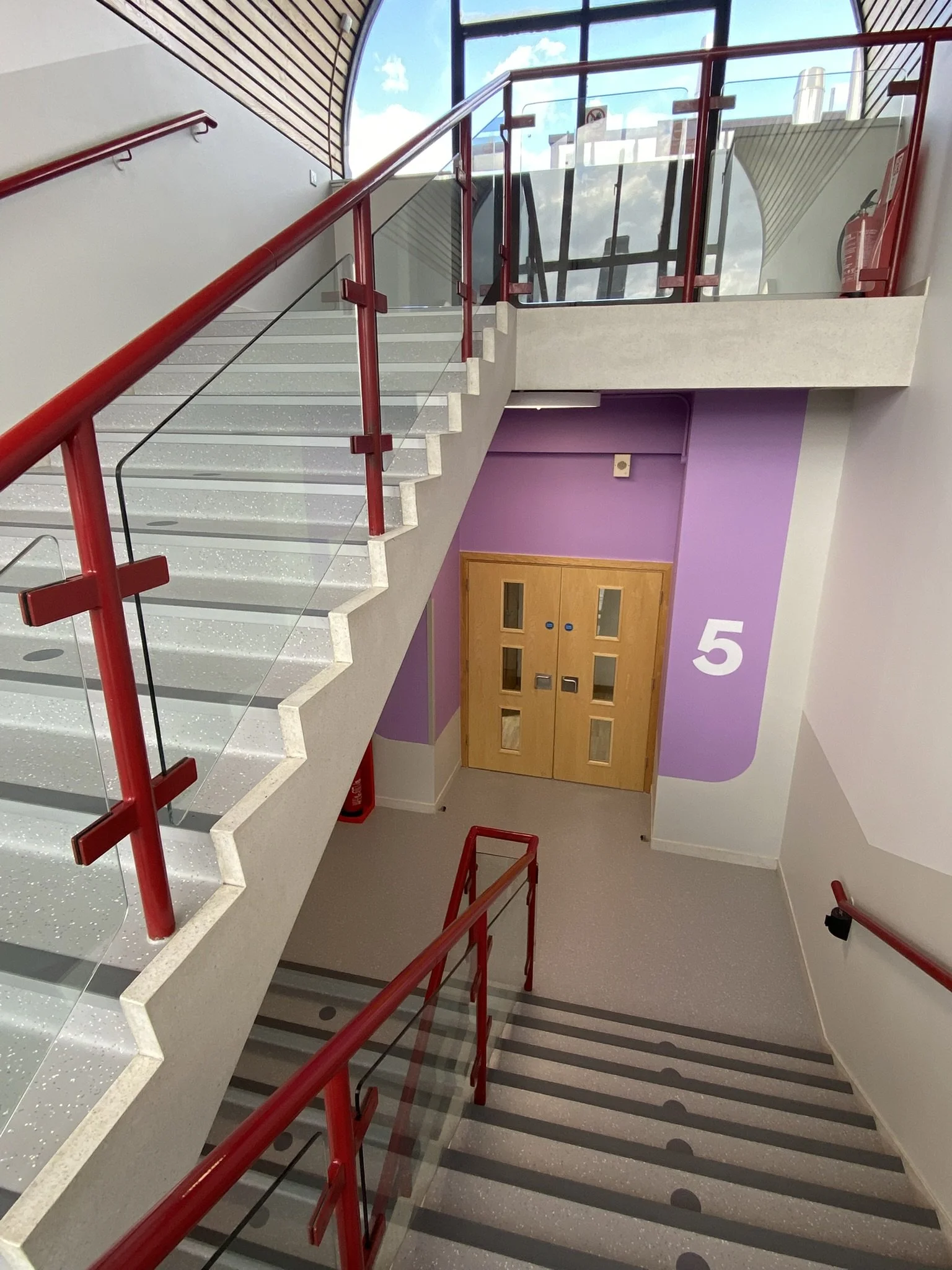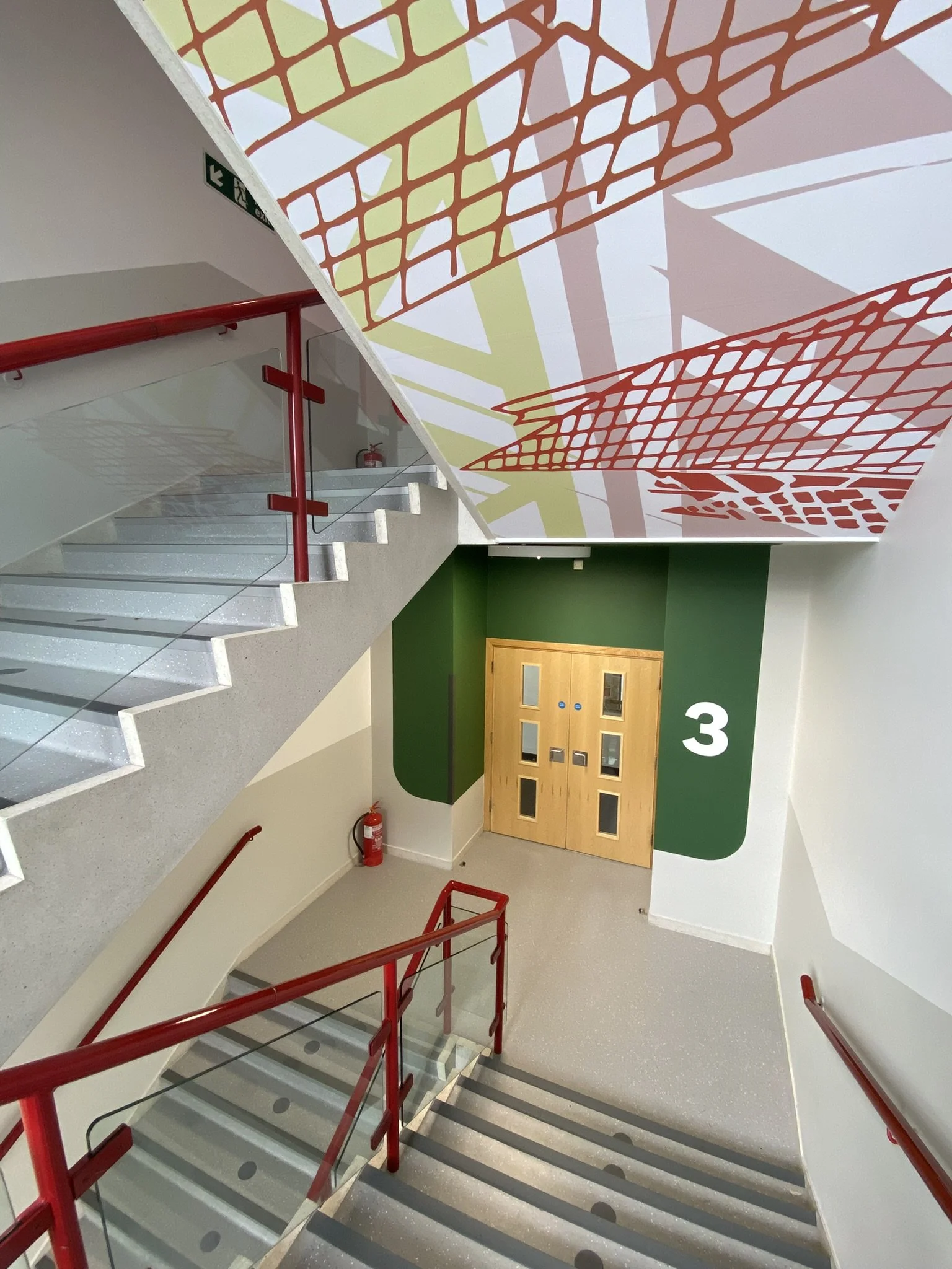 The Concept design, Wayfinding Strategy, Technical detailing, approvals and co-ordination for the school’s key Stair Cores, ensured fast-tracked refurbishment works were possible during the school summer shutdown.