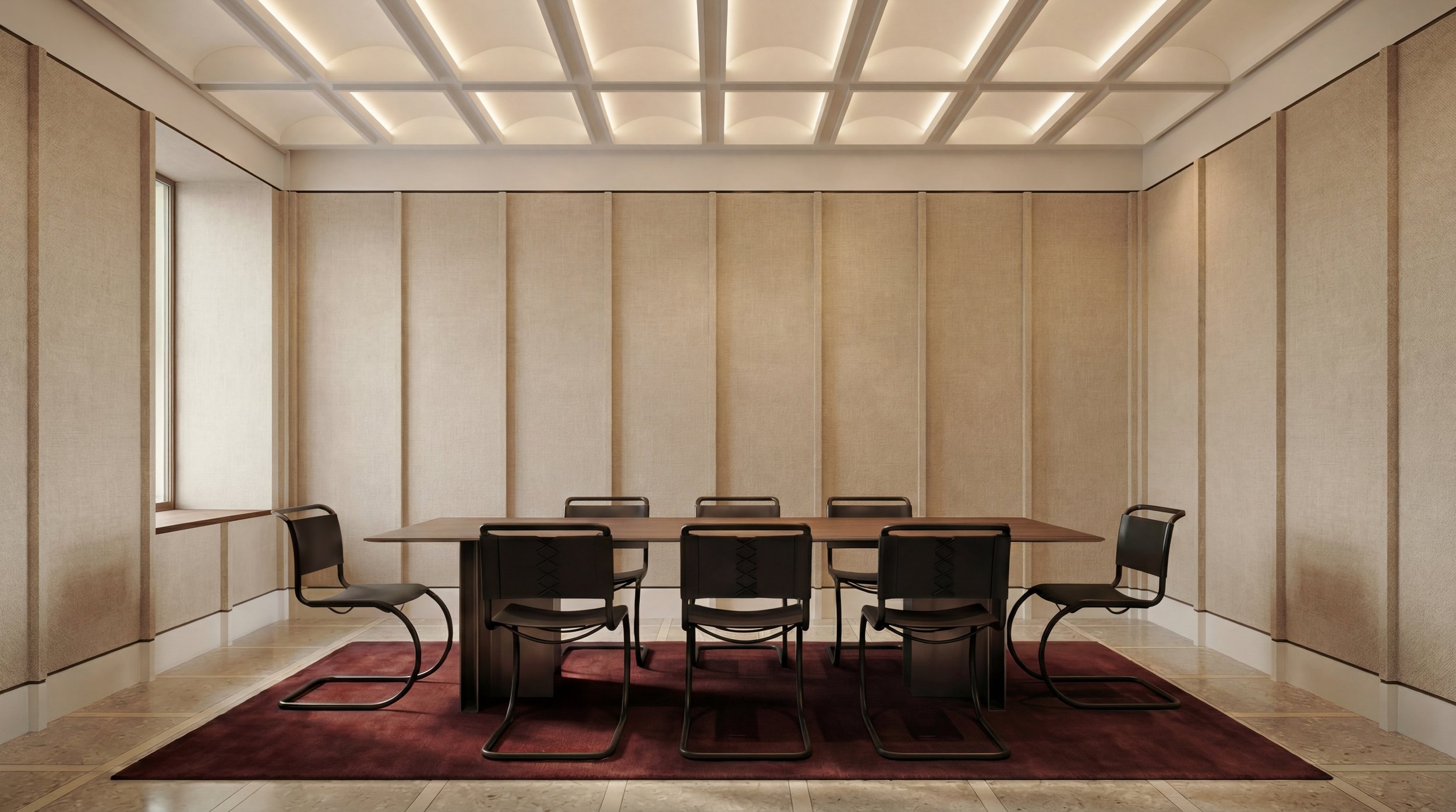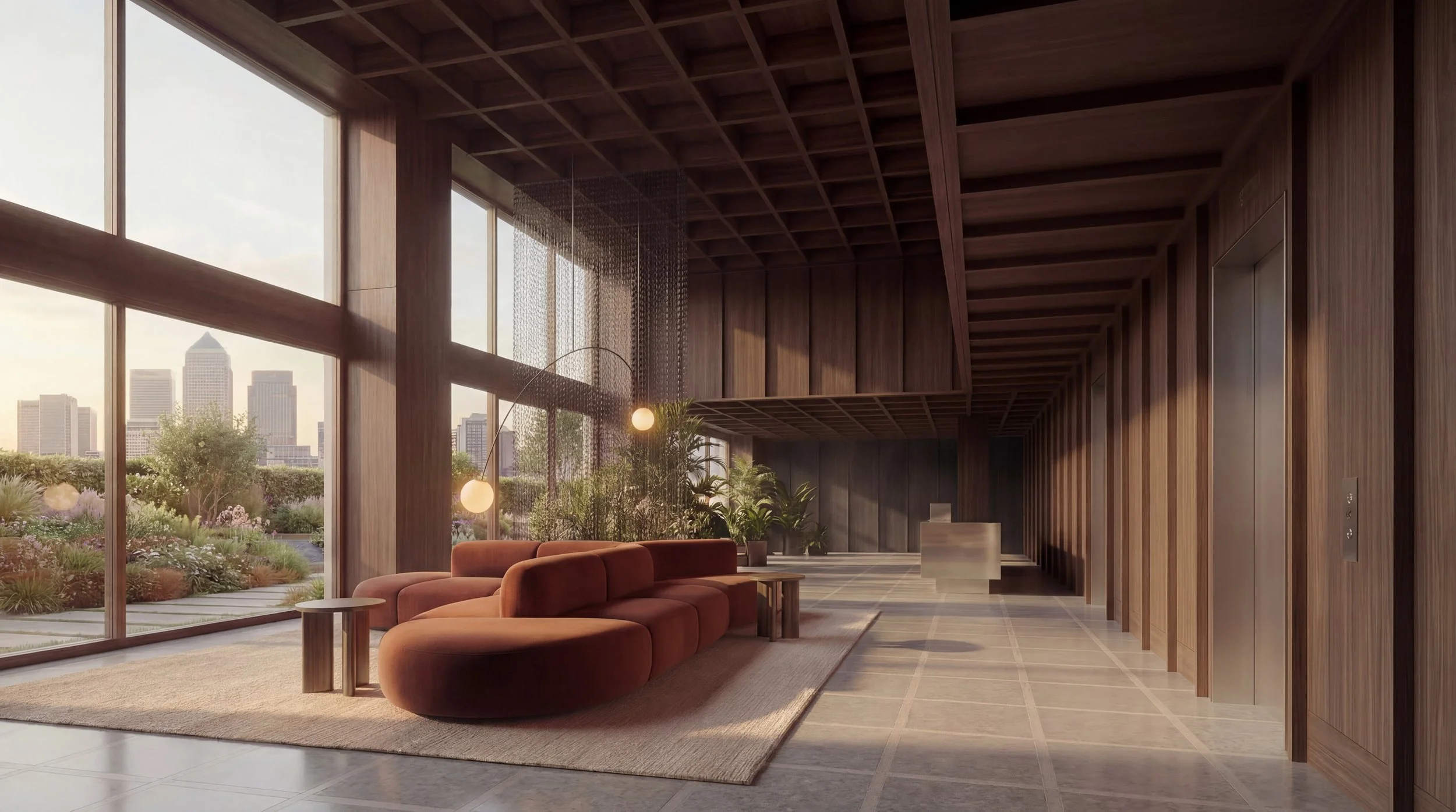 The design adopts a disciplined and refined approach, moving away from conventional luxury in favour of a more controlled, confident aesthetic. A reduced material palette, strong contrast and carefully integrated lighting create a composed and authoritative environment aligned with the expectations of high-net-worth occupiers.